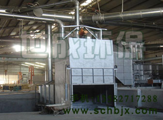 在化鋁合金過程中會產(chǎn)生大量鋁灰,由于鋁灰中含有約20%的金屬鋁,因此都對鋁灰進(jìn)行回收處理,從而減少金屬鋁的損耗。在采用大鍋炒灰方法回收鋁金屬時,由于鋁灰從熔煉爐扒出來時溫度高達(dá)700℃左右,鋁及一些添加劑繼續(xù)發(fā)生反應(yīng),產(chǎn)生大量熱量和煙氣,煙氣中的粉塵濃度高達(dá)15g/m3,高于《工業(yè)窯爐空氣污染物排放標(biāo)準(zhǔn)》(GB9078-1996)的二級標(biāo)準(zhǔn)。煙塵中含有AI2O3、HCI及易揮發(fā)的金屬氧化物等粉塵,對環(huán)境產(chǎn)生較大污染。因此我廠選用DMC-120布袋除塵器進(jìn)行過濾。除塵器對煙氣進(jìn)行處理的效率可達(dá)99.9%以上,則排放濃度可以達(dá)到環(huán)保要求的50mg/m3。